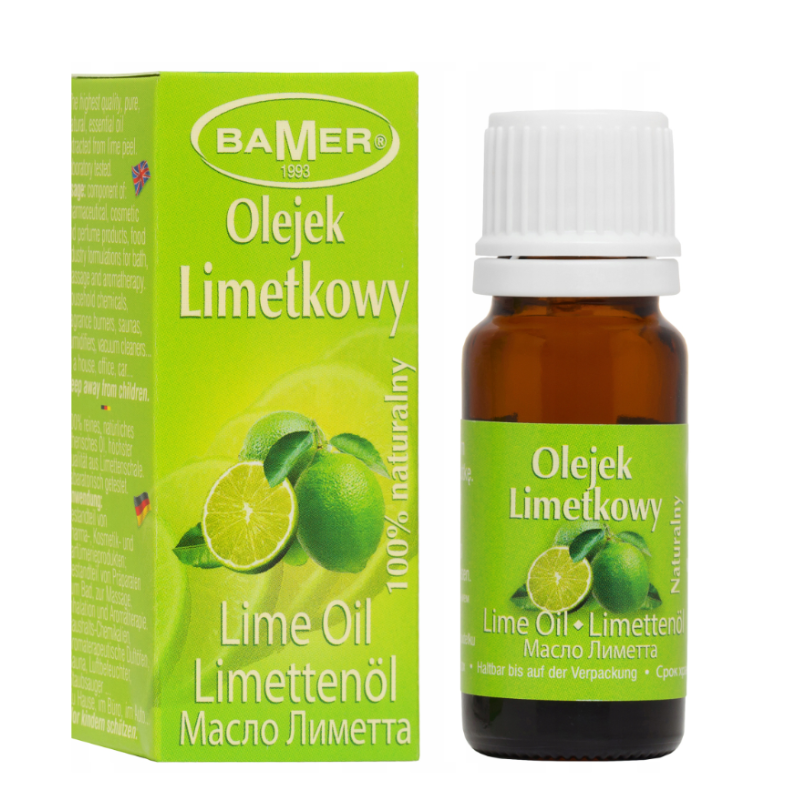 Naturalny olejek eteryczny z limetki marki Bamer to 100% czysta esencja natury, która zachwyca swoim świeżym, cytrusowym zapachem. Dzięki procesowi delikatnej destylacji parą wodną olejek zachowuje wszystkie cenne właściwości limetki, zapewniając najwyższą jakość i skuteczność działania. Jego wyjątkowy aromat działa orzeźwiająco na ciało i umysł, przynosząc ukojenie po intensywnym dniu oraz wspierając koncentrację i pozytywny nastrój.