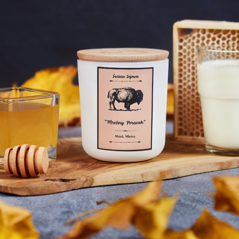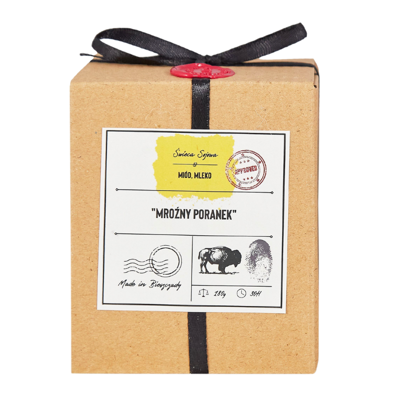 „Mroźny Poranek” od Bieszczadzkiej Sadyby to wyjątkowa, ręcznie robiona świeca sojowa, która przenosi do magicznego świata miodu i mleka. „Mroźny Poranek” łączy w sobie orzeźwiające nuty białej frezji i bergamotki, serce z miodowego bursztynu, migdała i fasoli tonka, oraz kojące akordy waniliowego kremu i drzewa sandałowego, tworząc zapach, który pobudza, otula i relaksuje. Wykonana w 100% z biodegradowalnego wosku sojowego. Bez GMO, parafiny i sztucznych dodatków. Jest bezpieczna dla alergików i idealna dla miłośników naturalnych produktów.