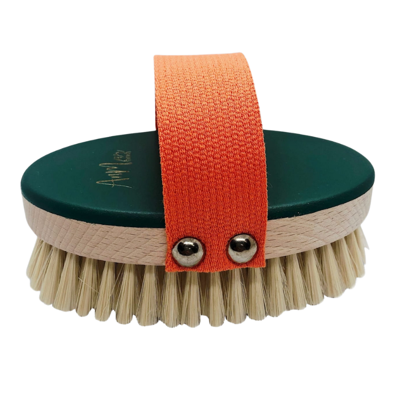 Szczotka jest biodegradowalna i w 100% polska, co gwarantuje jej wysoką jakość i zgodność z zasadami zrównoważonego rozwoju. Pomarańczowy pasek z bawełny dodaje jej uroku i ułatwia użycie podczas masażu. Wykorzystanie szczotki w domowym spa zapewnia nie tylko odprężenie i relaks, ale także staje się skutecznym narzędziem w walce z niedoskonałościami skóry.