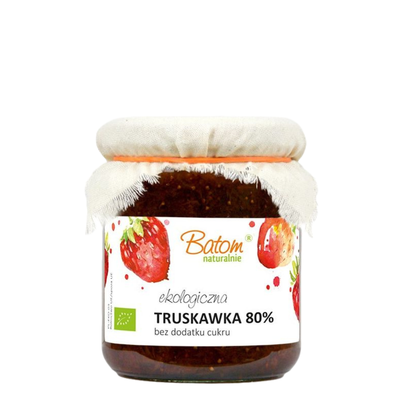 Bez konserwantów, bez dodatku cukru, bez ulepszaczy – wybieraj czystą naturę i ciesz się zdrowiem na długo. Głęboki, intensywny czerwony kolor słodkich owoców i niesamowite właściwości, skusisz się? Dżemik truskawkowy BATOM składa się w 80% z owoców i 100% smaku. Nie dostarczysz organizmowi zbędnych cukrów i kalorii, ale dasz mu za to wiele witamin. Dostęp do owoców w zimowy, chłodny wieczór, nigdy jeszcze nie był tak łatwy. Zadbaj o siebie, zadbaj o żywienie i zadbaj o zdrowie – pamiętaj, Ty jesteś ważna – dbaj o siebie, naturalnie.