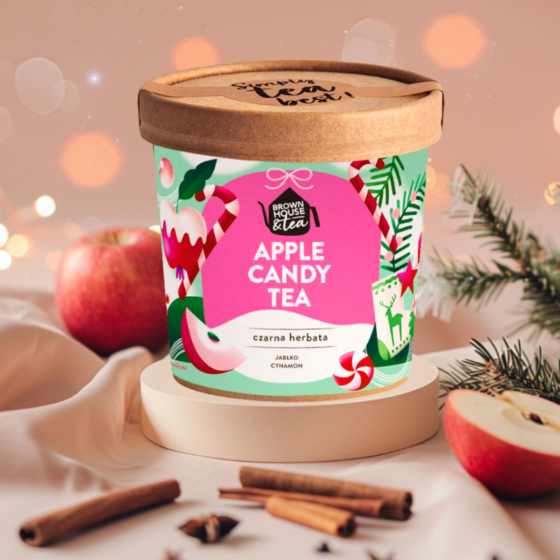Zdarza się, że herbata pachnie tak, jakby ktoś właśnie wyjął szarlotkę z piekarnika. I nie chodzi tu o metaforę, tylko o konkretną, jabłkowo-cynamonową prawdę w liściach. Apple Candy Tea to czarna herbata liściasta, która smakuje jak wspomnienie dzieciństwa – tylko bez kruszonki i kalorii. Mieszanka powstała w pracowni Brown House & Tea, gdzie aromat traktuje się z powagą godną perfumerii. Skład? Czarna herbata (55%), suszone jabłko (25,5%), kora cynamonowca (17%) i naturalny aromat jabłkowy. Zero sztuczności – za to maksimum przyjemności. Odmiana: Camellia Sinensis var. Assamica. Forma: sypana, ręcznie pakowana w elegancki słoik 40 g. Nie znajdziesz tu torebek. Tylko liście – wolne i zwarte.