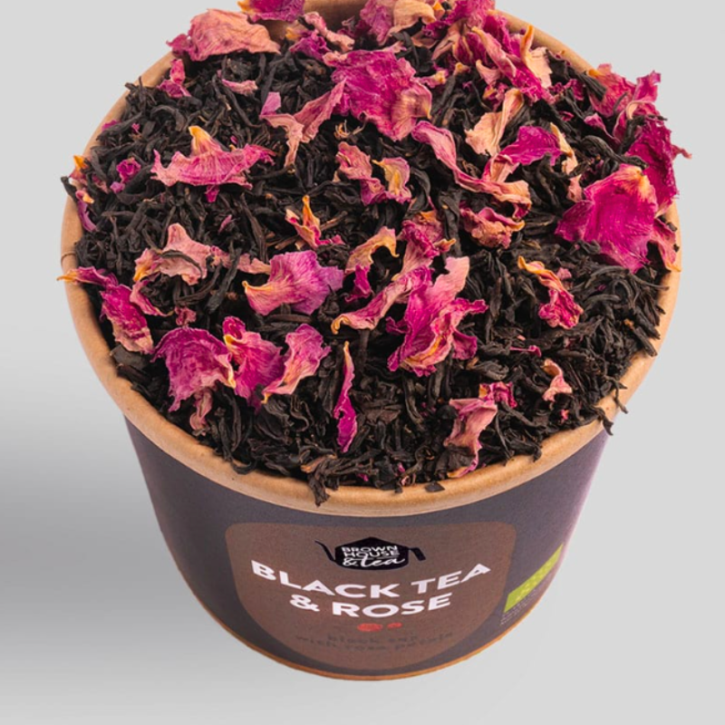 Czasem smak mówi więcej niż skład. A czasem jedno i drugie mówi wszystko. Black Tea & Rose od Brown House & Tea to czarna herbata aromatyzowana w sposób tak naturalny, że trudno uwierzyć, że nie ma tu żadnych olejków dodanych z zewnątrz. Wszystko dzieje się w jednym miejscu – w ekologicznym ogrodzie Da Zhang Shan w Chinach, gdzie liście czarnej herbaty Congou Superior i kwiaty róży chińskiej congou rosną obok siebie i dojrzewają w tym samym rytmie.