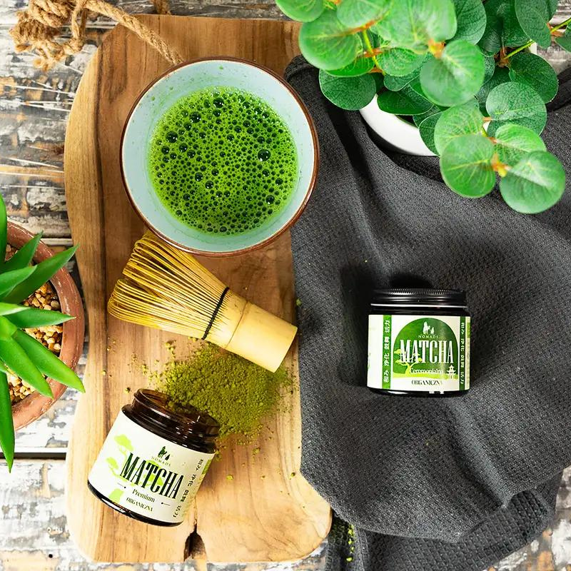Matcha Premium od Darvea to wyjątkowa zielona herbata sproszkowana, stworzona z najwyższej jakości liści herbaty uprawianych w Japonii. Posiada bogate właściwości antyoksydacyjne, dzięki czemu wspiera Twój organizm w walce z wolnymi rodnikami i pomaga w detoksykacji organizmu. Matcha jest także doskonałym wyborem, jeśli szukasz wsparcia w procesie odchudzania – zawarte w niej katechiny przyspieszają metabolizm, co więcej, dostarcza cennej energii bez efektu nagłego spadku poziomu cukru. Możesz przygotować z niej tradycyjną matcha tea lub pyszne matcha latte. Produkt rolnictwa ekologicznego, doskonale nadaje się do ceremonii herbacianych.