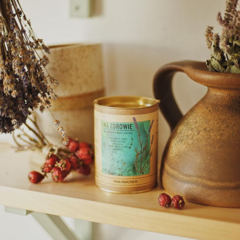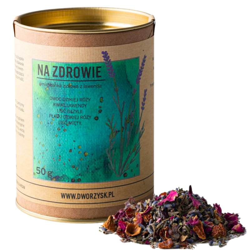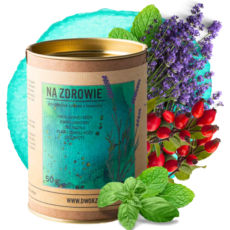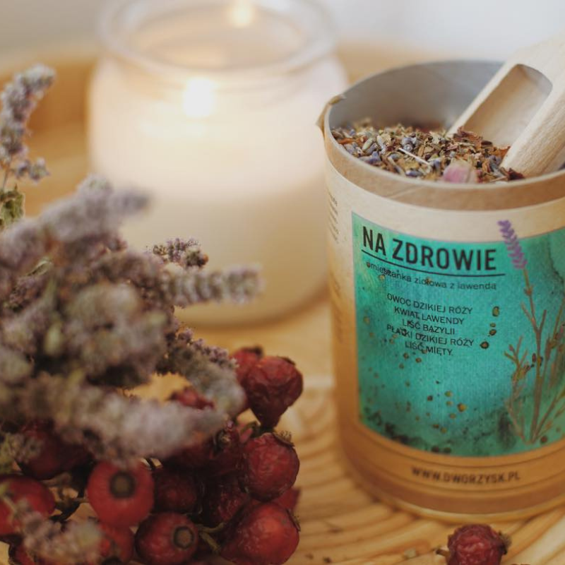 Mieszanka ziołowa „Na Zdrowie” od Dworzysk to kompozycja ziół dedykowana do wzmocnienia odporności. Zawiera lawendę i bazylię, które są znane z ich zdolności do łagodzenia objawów zmęczenia. Dodatek owoców dzikiej róży, będących bogatym źródłem witaminy C, wzmacnia system odpornościowy, a płatki dzikiej róży wspierają procesy regeneracyjne organizmu. Mięta, kolejny składnik tej mieszanki, przynosi ulgę i uspokojenie, co jest szczególnie cenne w stresujących czasach.