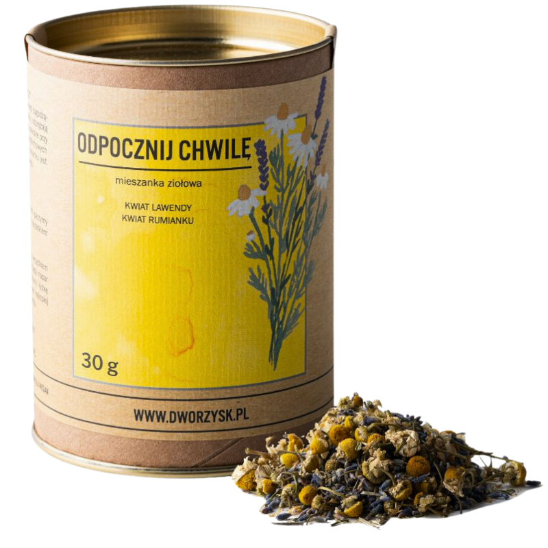 Odkryj naturalną moc relaksacji z „Odpocznij Chwilę”, wyjątkową mieszanką ziołową od Dworzysk. Ta starannie wyselekcjonowana kompozycja lawendy i rumianku zapewnia nie tylko głęboki relaks, ale również działa kojąco na układ pokarmowy i nerwowy. Dzięki naturalnym składnikom, napar z tej mieszanki stanowi idealną formę aromaterapii, która pomaga odzyskać wewnętrzną równowagę. Lawenda, znana ze swoich uspokajających właściwości, w połączeniu z rumiankiem, który łagodzi napięcie, tworzy idealny napój na chwilę odpoczynku. Ponadto, „Odpocznij Chwilę” sprawdzi się doskonale jako baza do orzeźwiających lemoniad czy relaksujących kąpieli. Wybierz naturalne rozwiązanie dla swojego zdrowia i dobrego samopoczucia z mieszanką ziołową Dworzysk.