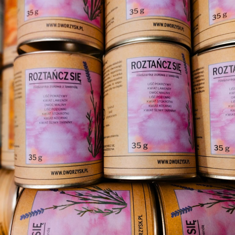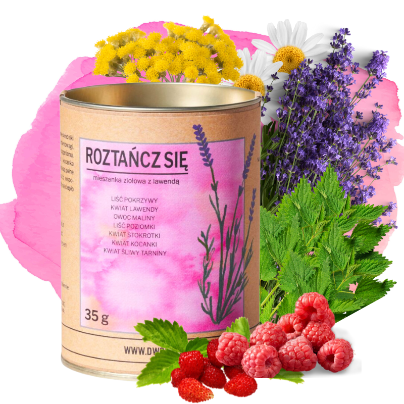 Mieszanka ziołowa „Roztańcz Się” od Dworzysk to Twój codzienny zastrzyk energii i wsparcie w oczyszczaniu organizmu. Herbatka wspiera wewnętrzną równowagę, wzmacnia odporność, wspomaga przemianę materii i detoksykację Dzięki starannie dobranym składnikom, takim jak pokrzywa, lawenda, malina, poziomka, stokrotka, kocanka i tarnina, napar ten jest bogaty w witaminy i antyoksydanty. Jeśli szukasz naturalnego sposobu na poprawę samopoczucia, ta mieszanka jest dla Ciebie. Pokrzywa znana jest z właściwości oczyszczających, lawenda dodaje naparowi relaksującego aromatu, zaś malina i poziomka wzbogacają go o witaminy. Stokrotka i kocanka działają tonizująco, a tarnina dodaje energii. Tę herbatkę możesz pić zarówno na ciepło, jak i na zimno, ciesząc się jej korzystnym wpływem na organizm. Wybierz „Roztańcz Się” od Dworzysk, aby każdy dzień zacząć od tanecznego kroku.