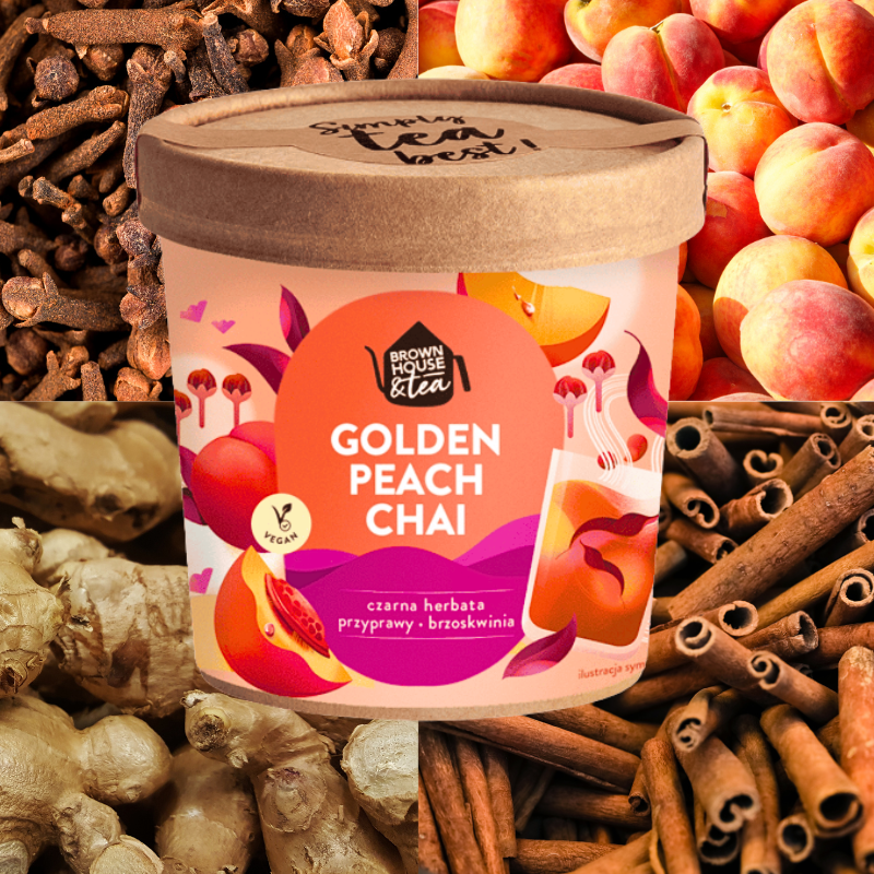 Herbata czarna Golden Peach Chai – sypana z brzoskwinią i przyprawami