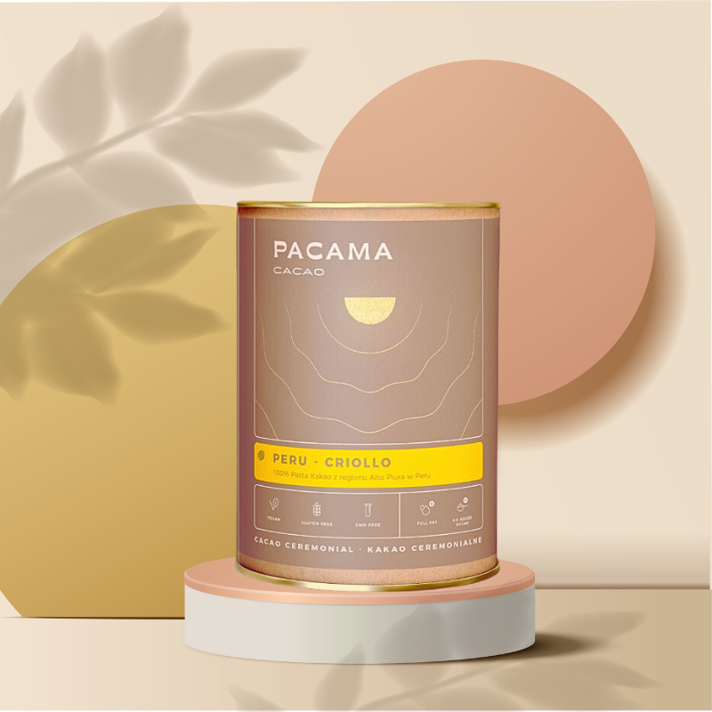 Zielone wzgórza Alto Piura w Peru skrywają jedno z najcenniejszych ziaren kakao na świecie – Criollo. W tej puszce znajdziesz 100% pasty kakaowej, bez cukru, bez dodatków, bez kompromisów. Niealkalizowane, pełnotłuste i zachowujące naturalne właściwości – idealne do rytuału, ale także do codziennego uziemienia.