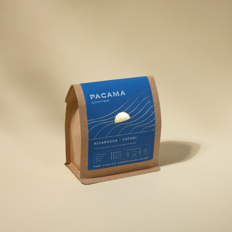 Nie musi być głośna. Nicaragua Catuai wchodzi cicho i zostaje na długo. To Arabica specialty z gór Jinotega, gdzie ziarna dojrzewają w spokojnym rytmie wysoko pośród drzew. Średnie palenie i mokra obróbka wydobywają z nich delikatną słodycz, łagodną gorycz i ciemnoczekoladowy spokój, który koi zmysły.