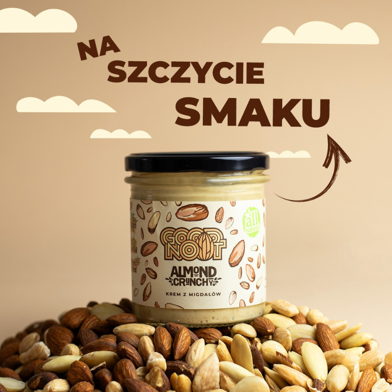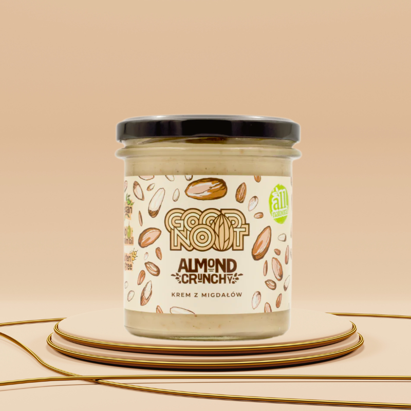 Krem nie zawiera sztucznych barwników ani konserwantów, co dodatkowo podkreśla jego naturalny charakter. Przechowywany w szklanym słoiku, Almond Crunchy zachowa swoją świeżość przez długi czas, co więcej, opakowanie to podkreśla ekologiczny charakter produktu. Almond Crunchy to nie tylko przysmak, ale również zdrowa alternatywa dla tradycyjnych kremów. Jego bogactwo w wartości odżywcze, w połączeniu z wyjątkowym smakiem prażonych migdałów, czyni go doskonałym dodatkiem do wielu potraw i deserów.