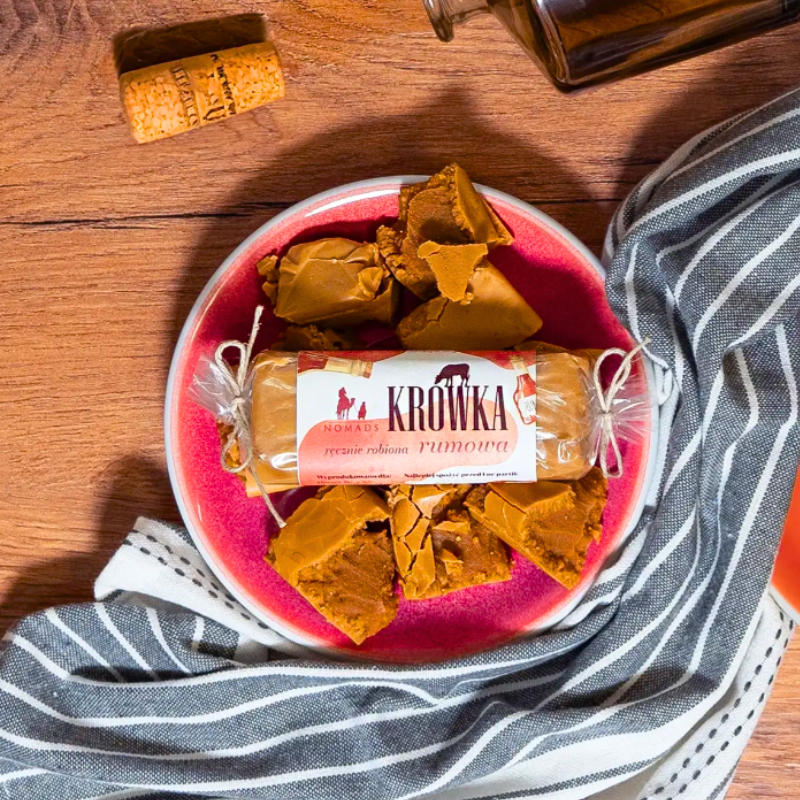Krówka Rumowa Nomads to wyjątkowa słodycz, która zachwyci każdego miłośnika deserów. Dzięki połączeniu kremowego mleka zagęszczonego, masła oraz subtelnego aromatu rumu i miodu, każda krówka rozpływa się w ustach. Rumowa nuta zapewnia głębię i wyrafinowanie, tworząc idealną przekąskę, która zaspokoi ochotę na coś słodkiego.