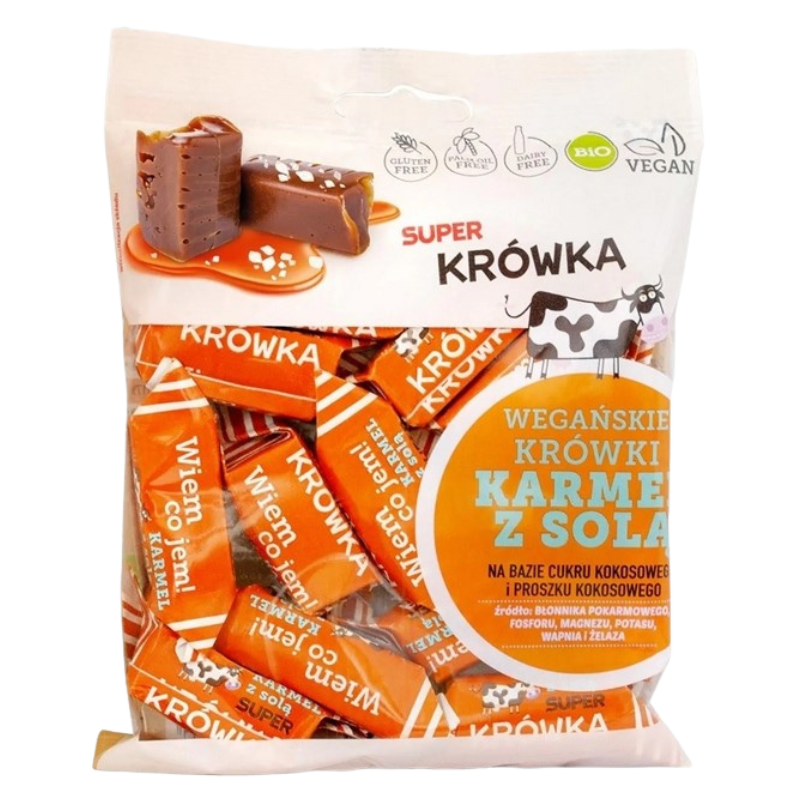 Ciesz się słodyczą i naturalnym smakiem w pełni ekologicznych krówek karmelowych z solą od Me Gusto. Te wegańskie cukierki to wyjątkowa przekąska, która łączy głębię karmelu z lekką nutą soli. Słodzone syropem z agawy i daktyli, są delikatne i kremowe. Krówki nie zawierają białego cukru, glutenu ani oleju palmowego. To nie tylko smak – to również pełnia zdrowia.