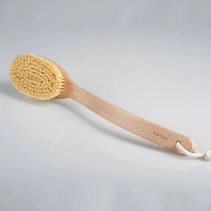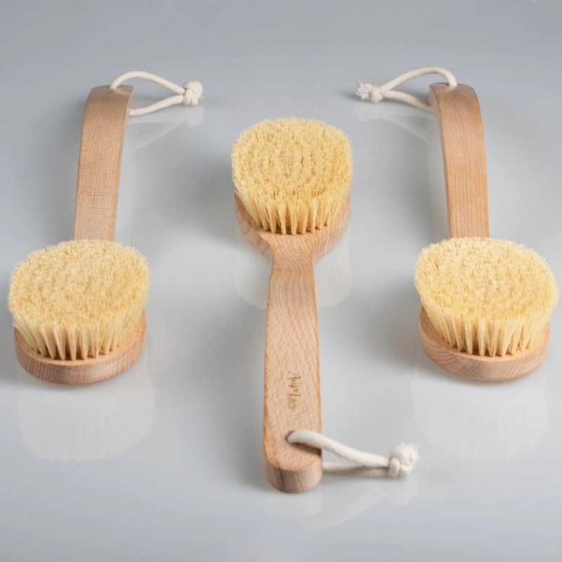 Szczotka do masażu ciała na mokro wykonana z wysokiej jakości materiałów, takich jak drewno bukowe i naturalne włókna agawy. Gwarantuje trwałość oraz komfort użytkowania. Dzięki swojej konstrukcji jest również idealna do użytkowania na mokro. Doskonale sprawdza się podczas kąpieli. Długa, wygodna rączka szczotki, gwarantuje dostęp do trudno dostępnych miejsc i skuteczny masaż całego ciała.