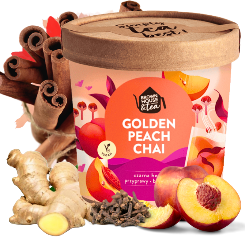 Herbata czarna Golden Peach Chai – sypana z brzoskwinią i przyprawami