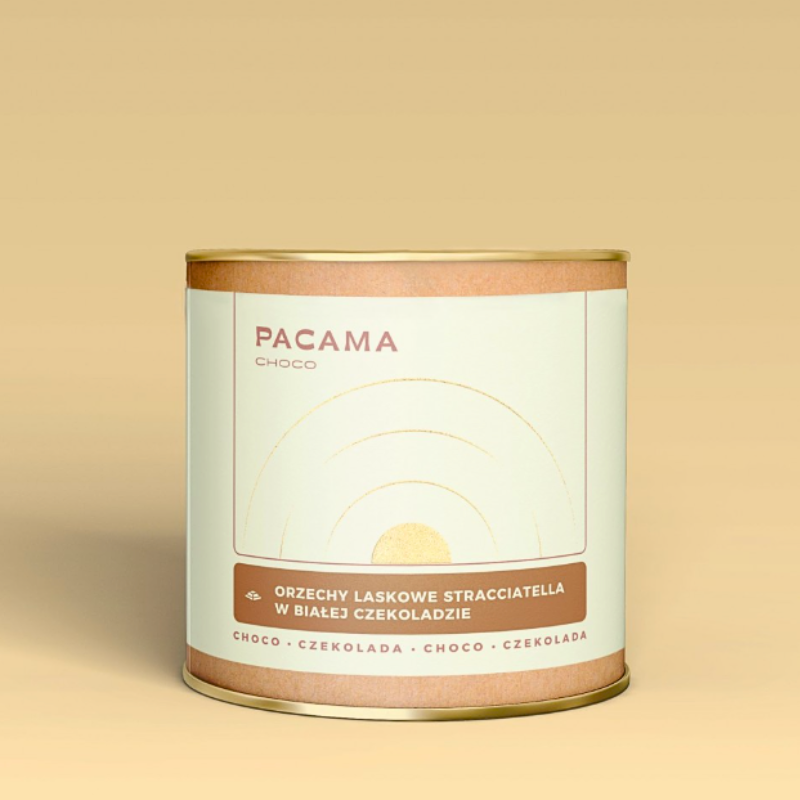 W środku znajdziesz duet idealny: orzechy laskowe i biała czekolada stracciatella. Kremowa, z nutą czekolady deserowej, wciąga jak wspomnienie wakacji. Każdy orzech przechodzi selekcję, potem spotyka się z białą czekoladą z dodatkiem naturalnej wanilii. Produkcja odbywa się w krótkich seriach – ręcznie, bez konserwantów, bez ściemy. Skład czytelny jak skład symfonii: mleko pełne, kakao, wanilia, odrobina serwatki. Forma? Elegancka metalowa puszka, zamykająca ten smakowy teatr.