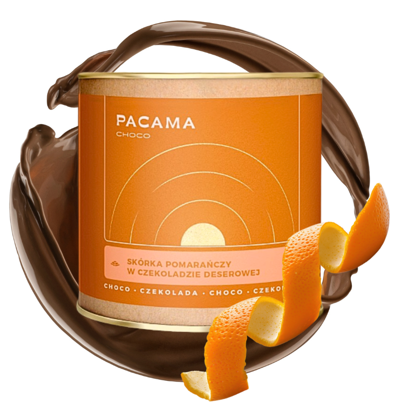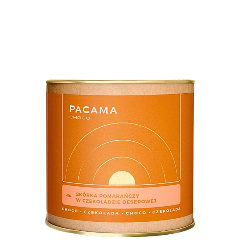 Skórka pomarańczy w czekoladzie deserowej Pacama Choco 150g (puszka)